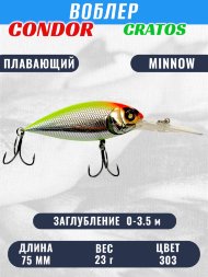 Воблер CONDOR CRATOS  размер 75 мм вес 23,0 гр заглубление 0 - 3,5 м цвет 303