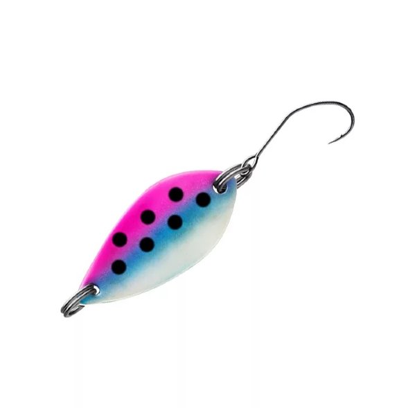 Оригинальная компактная колеблющаяся блесна с S-образным изгибом и довольно широким телом. Такое сочетание форм придает приманке неповторимую игру как на течении, так и в тихой воде. Двигаясь в толще воды, блесна совершает среднеширокие ритмичные колебательные движения. Соотношение массы и размера позволяет делать точные забросы против ветра средней силы. Отлично подходит для ловли хищников, прежде всего форели и голавля, а также язя и окуня.