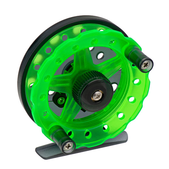 Катушка зимняя инерционная Kyoda Blaser универсальная проводочная катушка с направлениями вращения в обе стороны, которая может использоваться как для поплавочной ловли в летний сезон, так и зимой для подледной ловли. Торможение и регулировка шпули осуществляется фрикционным тормозом либо стопором. Корпус катушки выполнен из прочного композитного ударопрочного и морозостойкого пластика.